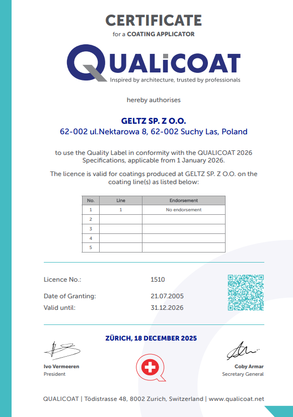 1993-2026 © GELTZ Sp. z o.o. | Competence in powder coating - Qualicoat License No. 1510 | Privacy Policy